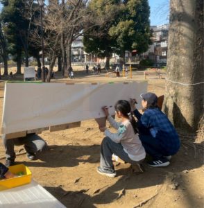 今回初めて設けた大きな模造紙のお絵描きコーナーでは、