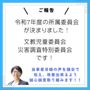 文教児童委員会と災害対策調査特別委員会の委員になりました!