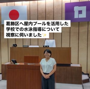 8月19日、葛飾区にて屋内プールを活用した水泳授業の取り組みについて視察を伺いました。